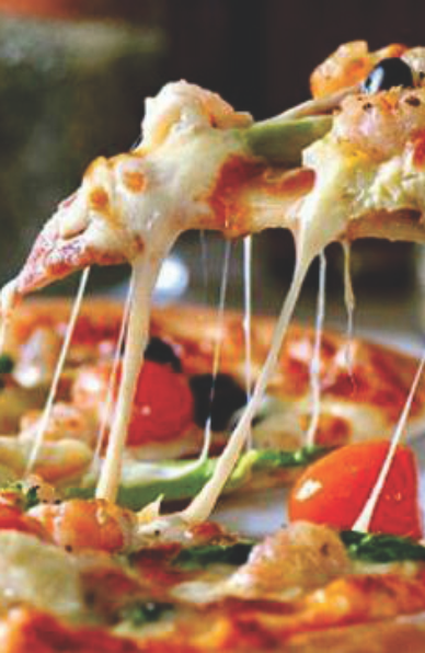 muzzarella, pollo, jamón cocido, champiñón y nuez