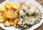 con salsa blanca y fileto (carne picada, espinaca, jamón y queso)